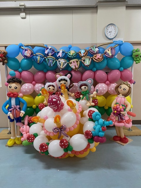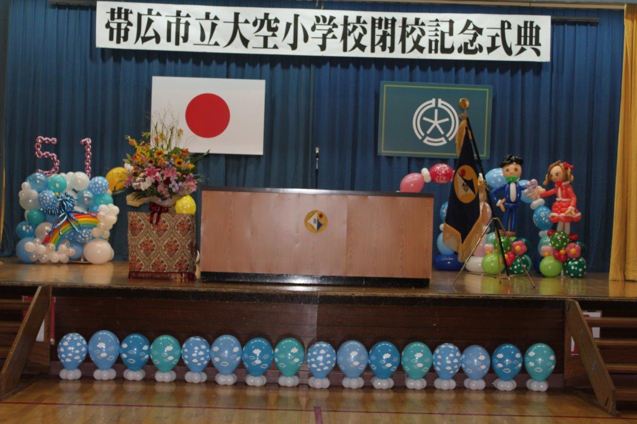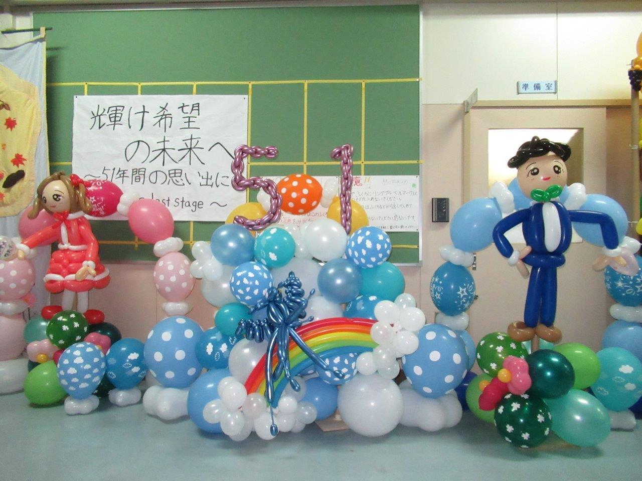 閉校式典のステージ装飾をミリィーさんが担当してくれました。式典後は玄関前に展示してあります。